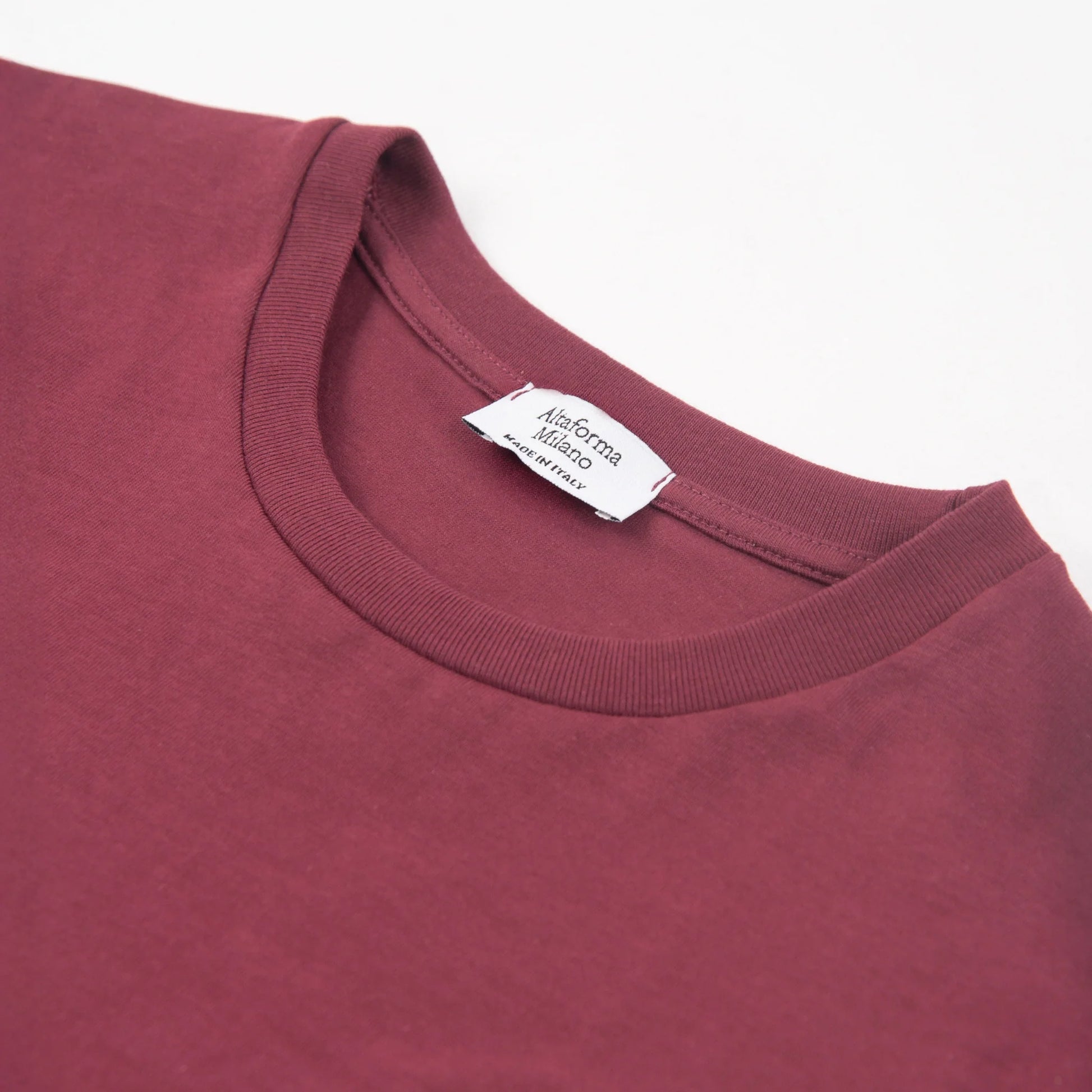 Ha il taglio muscle fit della linea Premium: aderente su spalle e petto, con più agio sull'addome. Il cotone extra-pettinato da 180 grammi garantisce che il colore rimanga pieno e profondo anche dopo i lavaggi — caratteristica essenziale per una tinta satura come il bordeaux.